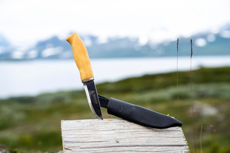 Messer mit einem schönen Griff aus geölter Birke und geliefert mit einer Scheide aus farbigem Rindsleder mit Sicherheitseinlage. Das Messer hat eine rasiermesserscharfe Klinge mit einer Länge von 9,5 cm und hat eine Klinge aus rostfreiem 1.4116N Messerstahl.Gesamtlänge des Messers: 20,5 cmKlingenlänge: 9,3 cmGewicht: 200 GrammMesserstahl: 1.4116NMaterial des Griffs: geölte BirkeScheide: Schwarzes Nussleder mit SicherheitseinsatzGarantie: Lebenslang gegen Herstellungsfehler