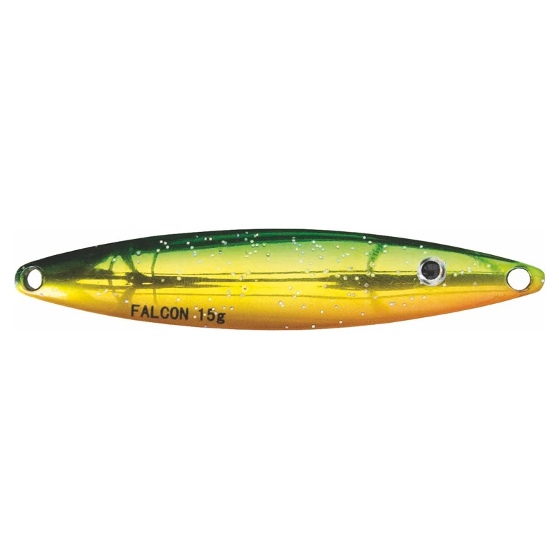 Falcon 7.6cm 15g ist ein Löffelköder, der sehr beliebt ist, um auf Küstenforellen und Meerforellen zu angeln.Er ist stark gebogen, was dem Löffelköder eine einzigartige und attraktive Gangart im Wasser verleiht. Natürlich wird Falcon mit Ringen, Laich und Haken geliefert, fertig zum Fischen. Falcon wird in einer vollautomatischen Stanz- und Biegevorrichtung hergestellt, was eine sehr hohe und gleichmäßige Qualität garantiert. Falcon Meerforellenköder ist aus Messing gefertigt.Gewicht: 15cmLänge: 7,6cm