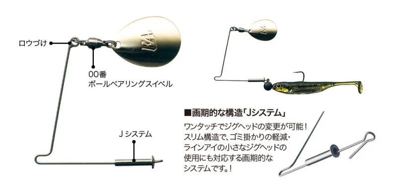 Der „J-Spinner“ ist eine neue Art von Spinnerbait, der sorgfältig mit der optimalen Balance für die Verwendung mit kleinen Softbaits wie der Fish Arrow Flash J-Serie und J-Head entwickelt wurde.