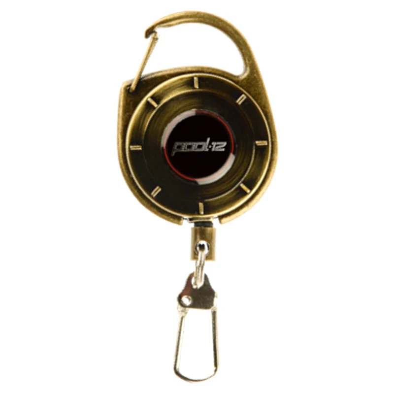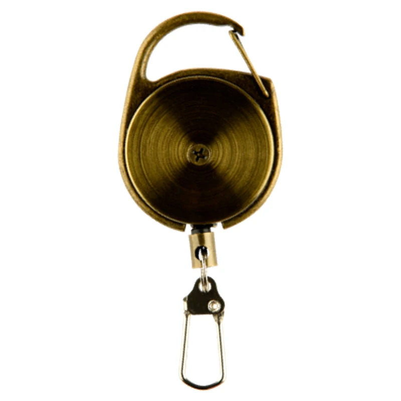 Robuste Metall-Pin-on-Reel, die sich leicht in einen D-Ring oder ähnliches einhaken lässt.