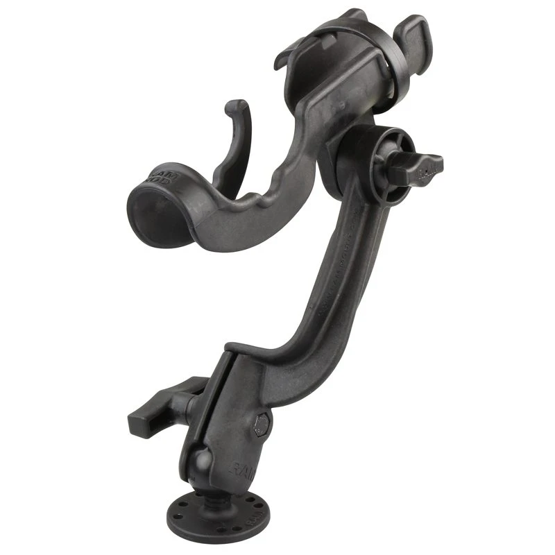 Der RAM-114-RB besteht aus dem RAM-ROD™ 2000 Angelrutenhalter, einem Ratschenarm mit einer offenen Buchse und einem runden Sockel mit 2,5″ Durchmesser, der das universelle AMPS-Lochmuster enthält. Mit der patentierten RAM-Gummikugel, dem Sockel und der Ratschenfunktion können Sie den Rutenhalter um 360 Grad drehen, während Sie die Halterung für den optimalen Winkel nach vorne und hinten kippen können.