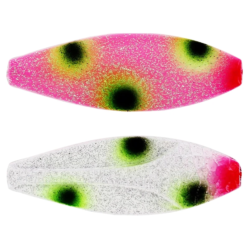 Dieser Durchlaufköder wurde entwickelt, um mehr Fische zu fangen. Außerdem verringert sich die Anzahl der Aussteiger im Drill! Er ist ein Weitwurfköder und hat einen unregelmäßigen Lauf, der auch weiter entfernte Fische anlockt. Bei einem Spinnstopp dreht sich der Köder im die eigene Achse und lockt so noch mehr Forellen an.Die 18g- und 28g-Versionen sind für das Spinnangeln auf Meerforelle an der Küste ausgelegt. Selbst bei starkem Wind wird eine erstaunliche Wurfweite erzielt aber trotzdem kann der Köder in sehr flachen Gewässerbereichen eingesetzt werden. Während der Testphase mit dem Serienmuster fing eines unserer Teammitglieder eine schöne Strecke. Große Forellen, allein fünf silberblanke Schönheiten von über 3 kg – und dass innerhalb von nur fünf Stunden!Montagetipp: Nach dem Durchfädeln der Schnur durch den Köder, eine kleine runde oder ovale Perle auffädeln, und dann einen Einzelhaken oder Drilling anknoten. Die Perle schützt den Knoten vor Beschädigung. Soll sich der Haken frei bewegen können, empfehlen wir die Verwendung eines ovalen Sprengrings. Zuerst den Sprengring im Hakenöhr befestigen Dann die Schnur an dem Ende des Sprengrings anknoten, an dem der Draht des Sprengrings doppelt liegt.BleifreiMaterial: ZinkDrei Perlen und ein ovaler Sprengring im LieferumfangDurchlaufköder – weniger Aussteiger im DrillDesigned & entwickelt von Westin, 3450 Allerød, DänemarkNaturgetreu handbemaltLänge: 4,5cmGewicht 5,5g