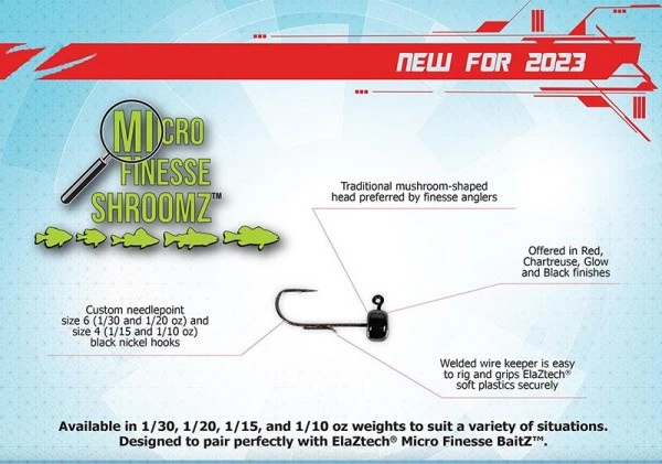Speziell angefertigte Nadeldrahthaken mit feinem Draht sorgen für einfache Hakensets. Ein geschweißter Draht Keeper ermöglicht eine einfache Köder-rigging, pinning Micro Finesse Köder sicher an Ort und Stelle.